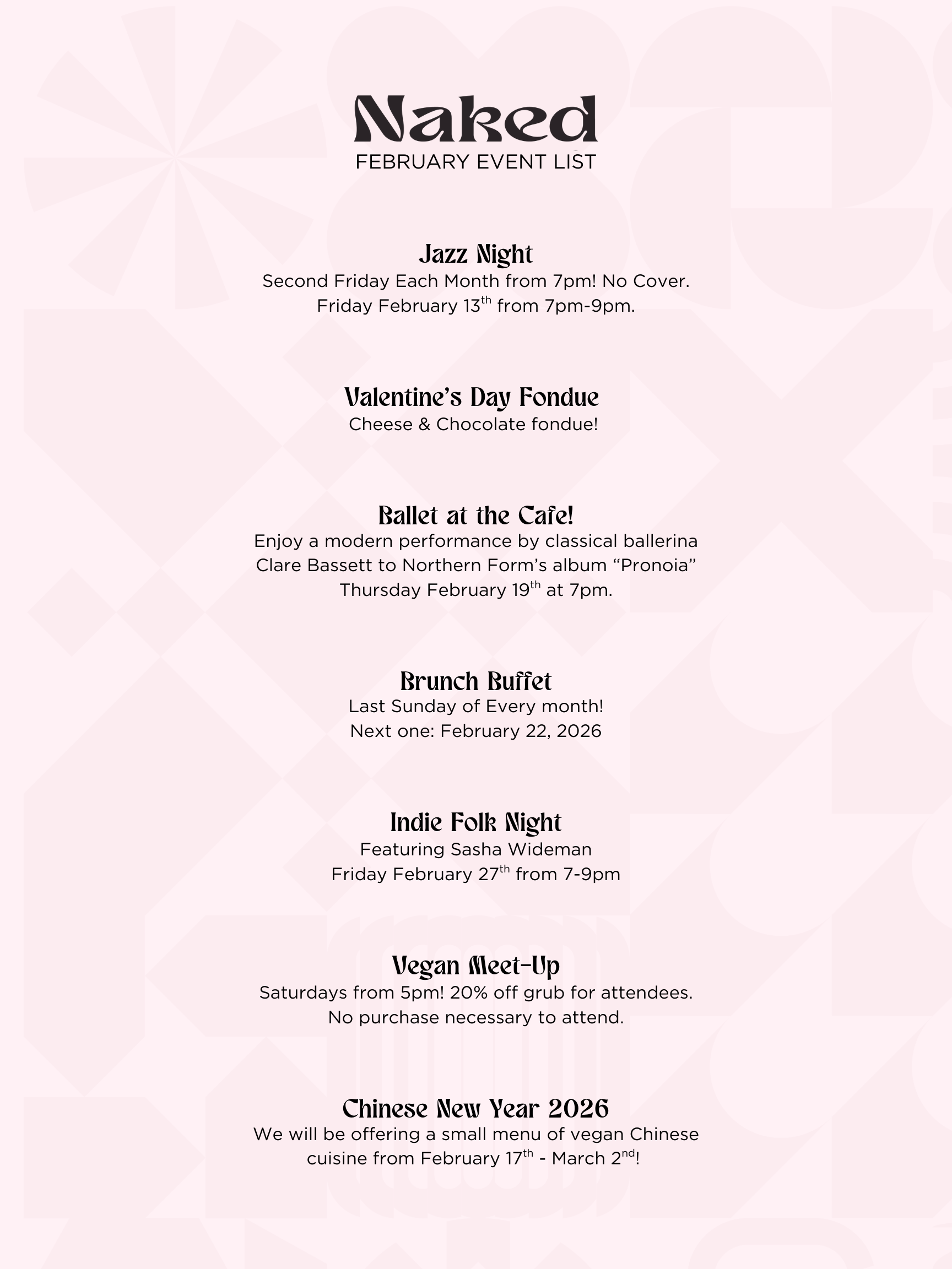 All You Can Eat Buffets, Jazz Nights, Vegan Meet Ups, & More!